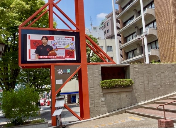 7月1日から8月31日まで埼玉会館(さいたま市浦和区)の御協力により、ホール棟・会議棟の“社会を明るくする運動” イエローライトアップに合わせて、県庁通り沿いの電光掲示板で動画を放映していただいています。朝の通勤時間帯から夜21時30分まで、1回あたり約3分間、令和7年度社明キャンペーン動画、埼玉県知事メッセージ、さいたまブロンコス今池翔大選手(埼玉県所沢市出身)のコラボ動画です。お近くの方は是非御覧ください! リンク先ではそれぞれの動画を御覧いただけます。